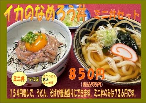 料金 | ミニ丼セット 850円 |
