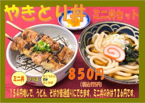 | 料金 | ミニ丼セット 850円 |