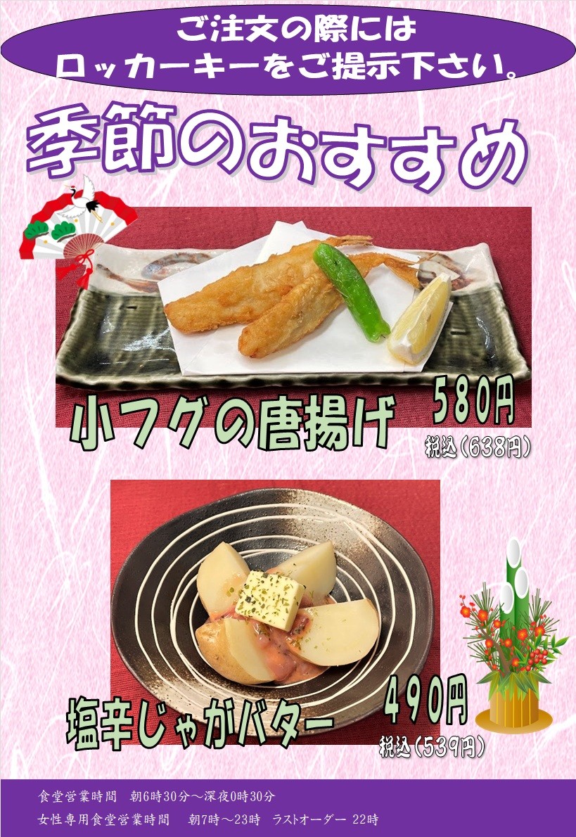 料金小フグの唐揚げ 580円塩辛じゃがバター 490円