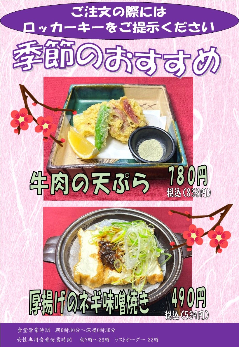 料金牛肉の天ぷら 780円厚揚げのネギ味噌焼き 490円